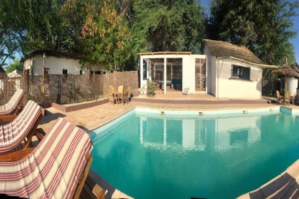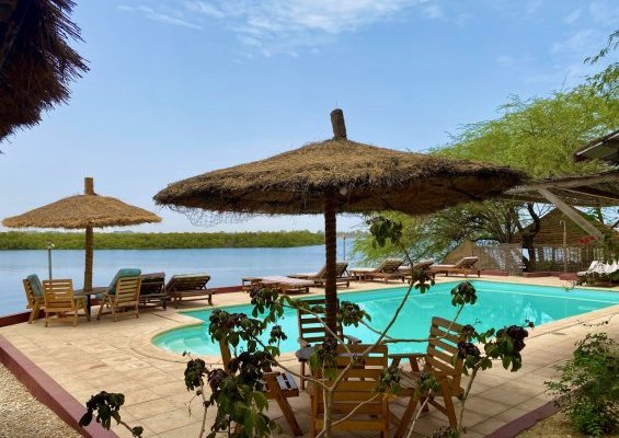 Pour vos moments de détente, le campement mets à disposition une piscine qui surplombe le bolong.