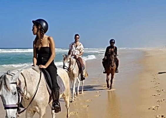 Moussa et les chevaux, vous accueillent toute l’année pour des balades de 1h30mn à une journée entière. Les cavaliers de tous niveaux sont bienvenus. Les cavaliers novices feront une balade au pas et si nécessaire longé, les bons cavaliers pourront si ils le souhaitent, faire un galop inoubliable à marrée basse, sur le sable dur et humide de la plage en rasant les vagues. Prévoyez un pantalon long, chaussures fermées, chapeau avec rebord et lunettes de soleil. Au retour de balade, si vous aimez prodiguer aux chevaux, les soins élémentaires, Moussa se fera un plaisir de vous expliquer les principes de la grande douche collective et roulades des chevaux dans le sable fin des dunes.