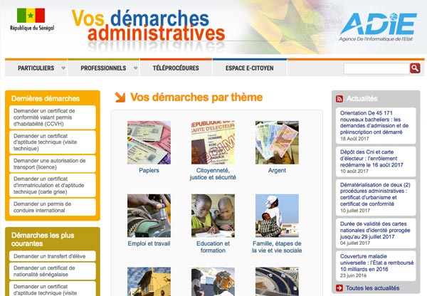 Le site contient des informations nécessaires aux citoyens (particuliers et professionnels pour initier leurs démarches administratives.