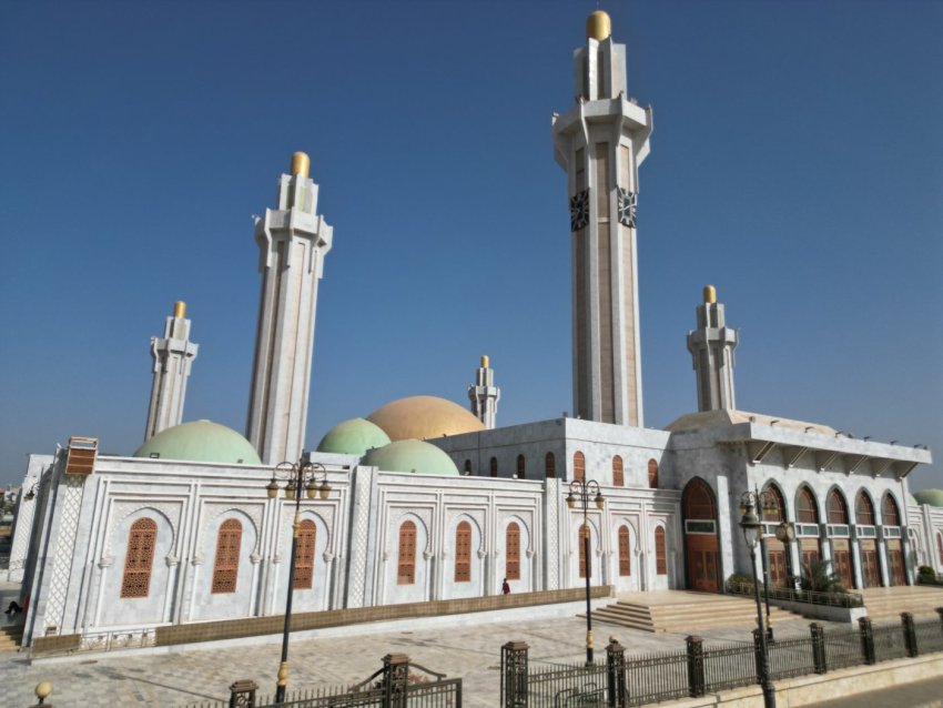 C’est l’un des plus grand complexe religieux de la Capitale pour ne pas dire de l’Afrique de l’ouest. Construit par la communauté mouride du Sénégal, elle compte 5 minarets flambant neufs dont le plus haut culmine à 75m de hauteur. Sa coupole en feuilles d’or et des lustres en cristal en font un lieu exceptionnel.
