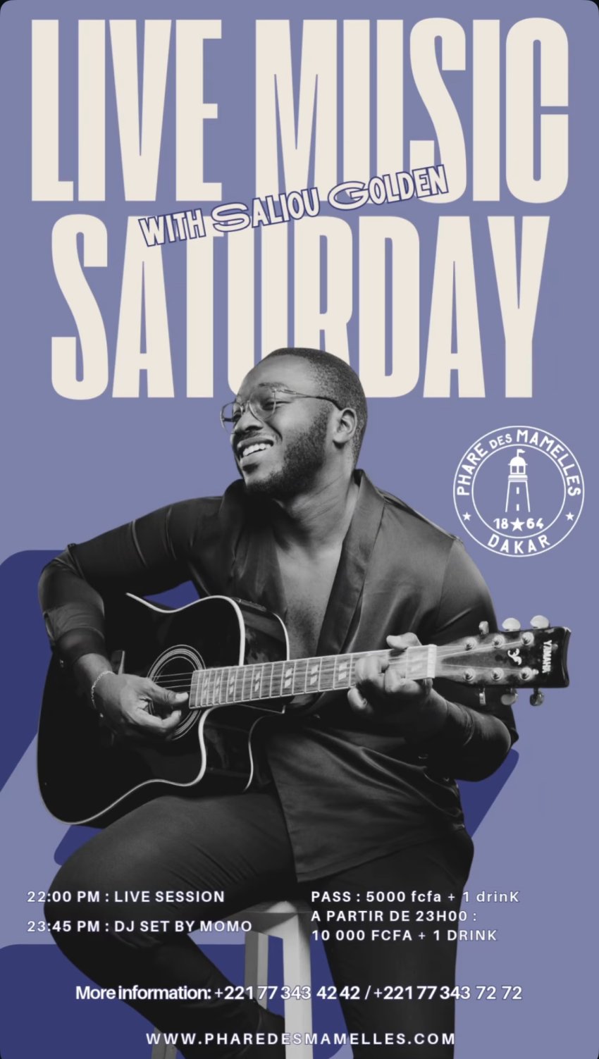 Le Phare des Mamelles accueille une nouvelle édition de Live Music Saturday avec une performance live de Saliou Golden. À partir de 22h, le public est invité à profiter d’une session musicale live dans un cadre emblématique de Dakar, offrant une ambiance conviviale et élégante.