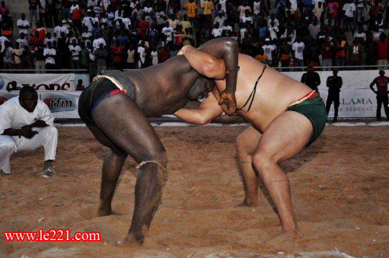 Au coup de sifflet, l’espagnol opte pour l’offensive en donnant un coup direct avant de saisir « le ngimb » de son adversaire. Il réussit un déracinement qui aboutit au placage. Au bout de 1 mn 27s, Juan signait sa troisième victoire dans l’arène sénégalaise après les deux premières sur Mbaye Sène (Pikine) et Cargo (Fass).