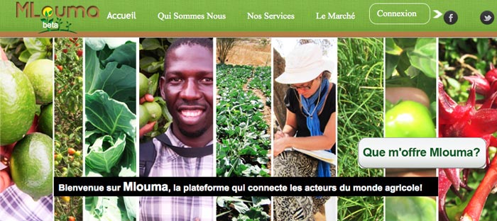 Mlouma tire son nom de Louma, les marchés hebdomadaires ruraux du Sénégal. Aboubacar Sidi Sonko, ingénieur informaticien originaire de Casamance, s’en est inspiré pour créer une plate-forme web et mobile permettant aux petits producteurs de proposer leur produits en ligne : piments, noix de cajoux, oignons, sésame, mangues, oranges... Pour chaque produit sont précisés les quantités disponibles, les dates d’expiration et les prix au kilo. Des alertes peuvent être envoyées par SMS à de potentiels acheteurs qui passent alors un ordre par téléphone portable.