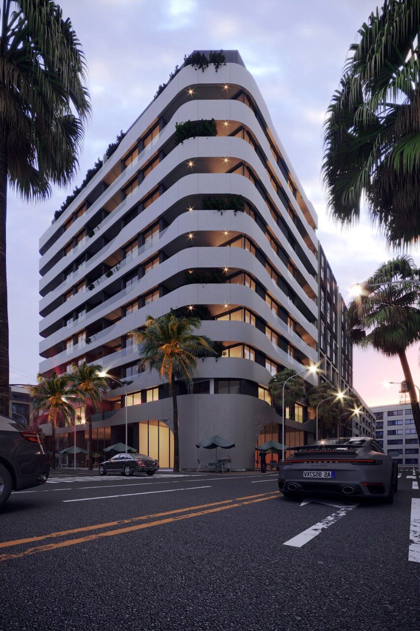 La résidence Mona propos est située à trois minutes de la plage du Virage. Elle comprend 8 appartements F2 au 1ᵉʳ étage, 32 appartements F4 du 2ᵉ au 9ᵉ étage, et 2 penthouses F6 au 10ᵉ étage, tous de haut standing. Les résidents bénéficient également d’un parking souterrain, d’un hall d’accueil et d’une salle de sport.