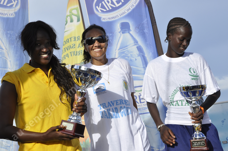Chez les dames, c’est la sociétaire de l’Olympique de Ngor Yaye Diadou Diagne qui s’est imposé pour la quatrième fois sur cette épreuve confirmant sa grande forme actuelle sur le circuit eau libre. Marième Faye du CNDG fraichement revenu des JO de Londres s’est adjugé la deuxième place devant Fatou Bintou Diagne de la Renaissance sportive de Yoff, classée troisième.