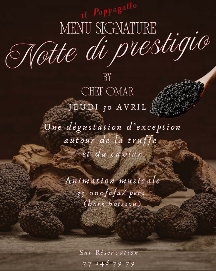 Le chef Omar propose un menu signature axé sur la truffe et le caviar, dans une ambiance raffinée accompagnée de musique.