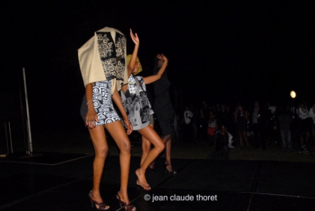 La deuxième partie de la soirée était réservée au défilé de mode, qui malgré l’absence de la musique a réussi à capter l’attention de l’assistance. L’univers de la mode dépeint en 4 tableaux par trois mannequins. Mimant tantôt des mannequins professionnels ou pas, des créateurs délurés et pour terminer des jeunes filles retombant en enfance.