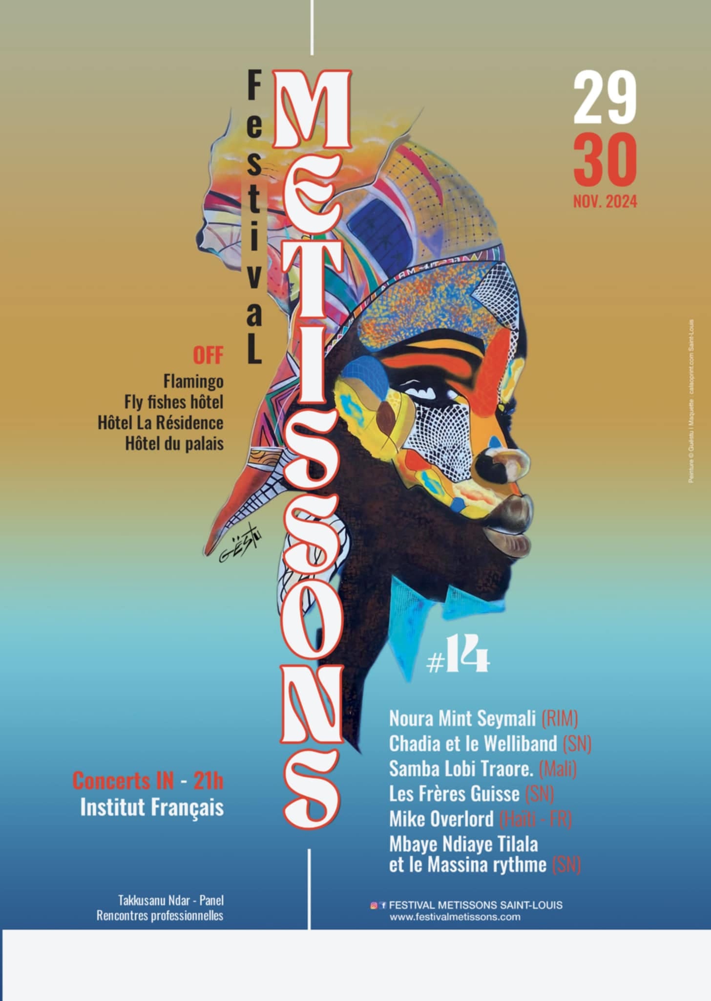 En parallèle des concerts, le festival propose un programme OFF dans plusieurs lieux emblématiques de Saint-Louis : Flamingo, Fly Fishes Hôtel, Hôtel La Résidence, Hôtel du Palais.