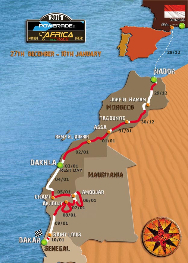 5 étapes au Maroc, 6 en Mauritanie et 1 au Sénégal