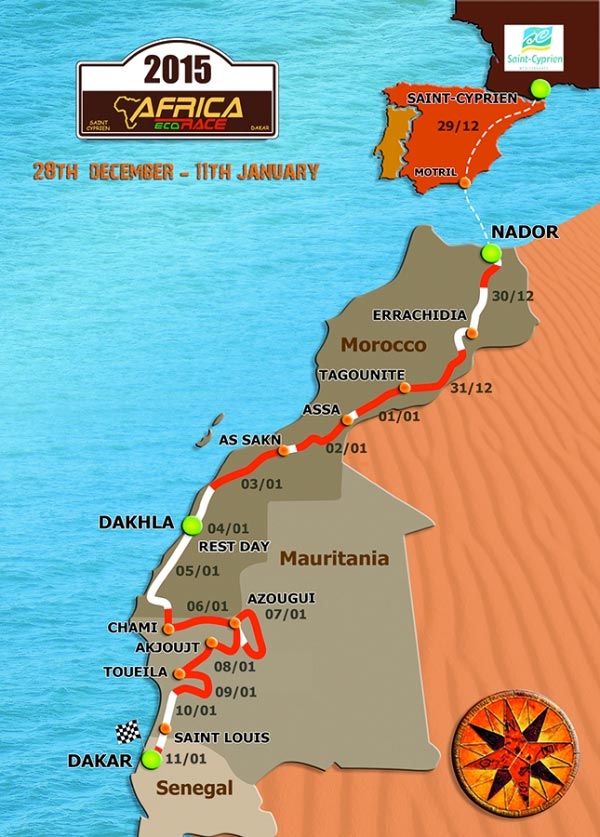 Après une dernière nuit sous le sublime ciel étoilé du Sénégal, c’est le cœur léger que les Finishers de l’AFRICA ECO RACE® 2015 vont s’élancer dans l’ultime spéciale d’une vingtaine de kilomètres qui sonnera comme une récompense et même, pour certains, comme une délivrance. Le podium dressé sur les bords du Lac Rose sur lequel tous les héros de cette septième édition recevront leurs trophées devrait être, une fois encore, le théâtre de beaucoup d’émotion et de joie. Enfin, dans la soirée, toute la caravane du Rallye aura la possibilité de se retrouver une dernière fois, autour d’un Cocktail « d’Aurevoir » et d’un barbecue, au bord de la piscine du KING FAHD PALACE.