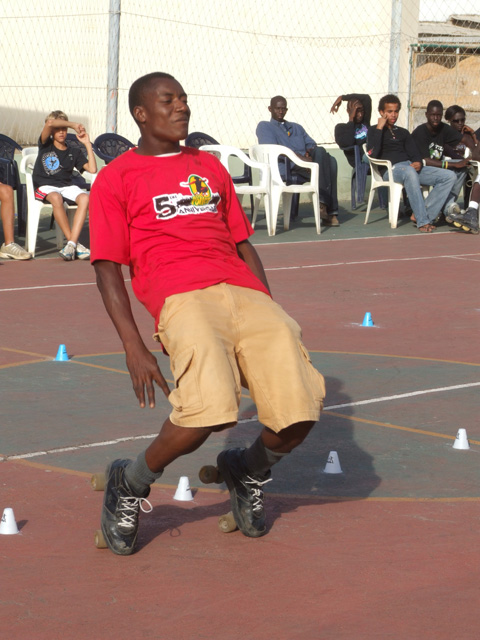 Le lendemain, les invités de Baba ont célébré les cinq ans d’Accro Roller. Sous différents ateliers allant du slalom au saut au tremplin en passant par la détente sèche, certains clubs de Dakar, de sa banlieue et de la région de Thiès ont tenu à marquer leur présence. Les associations françaises Planète Roller et Roller FR ont donné un cachet international à ce week-end spécial.