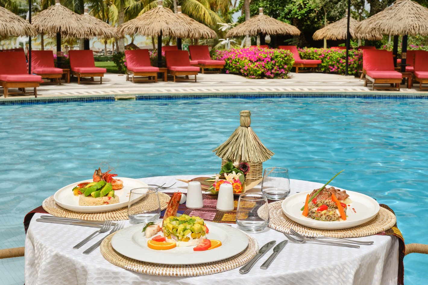 À l’Hôtel Royam, chaque repas est un vrai moment de plaisir. Vous pouvez manger en profitant de la vue sur la piscine, l’océan et un grand jardin. Le chef cuisine avec des produits locaux, de saison et achetés auprès de producteurs proches, pour une cuisine simple et respectueuse de l’environnement.
