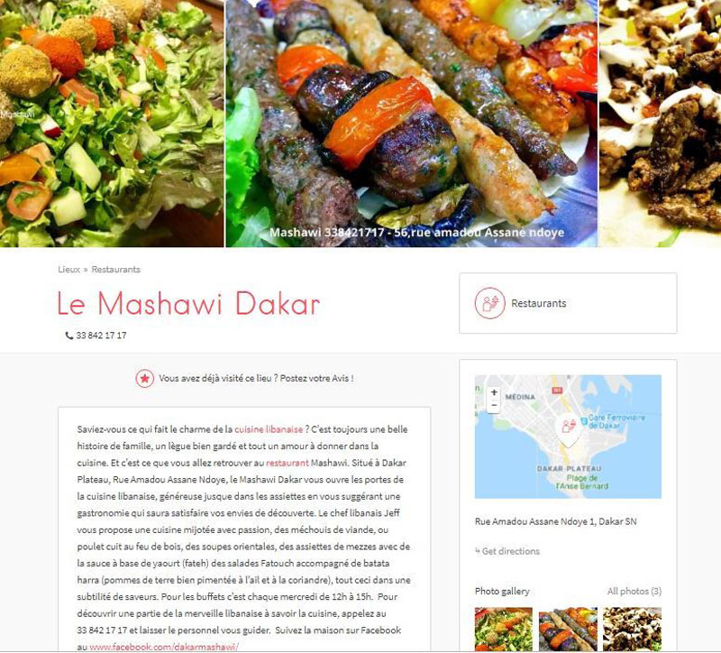 Senegalndiaye.com est un nouveau site web qui présente des centaines d’adresses de lieux à découvrir. Le site est très complet et propose des notifications, géolocalisations, et itinéraires pour faciliter vos déplacements. Il est très moderne, interactif et destiné à être plus ergonomique afin de faciliter la navigation des internautes. Selon le responsable, « de nouvelles fonctionnalités innovantes seront rajoutées dans les prochains jours pour le rendre plus performant ».