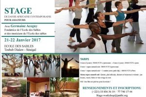 L’école des Sables (centre international de formation en danses traditionnelles et contemporaines d’Afrique) organise un stage de danse africaine contemporaine pour amateurs le week-end du 21 au 22 janvier 2017.