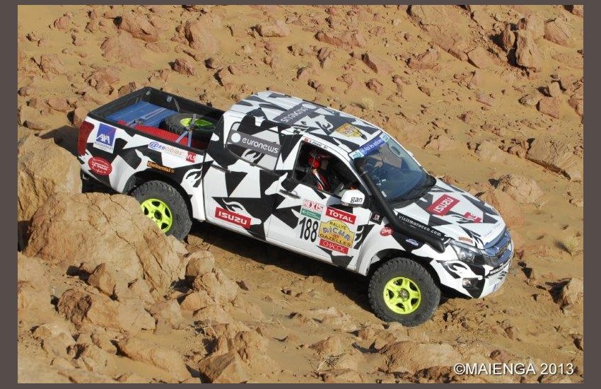 L’équipage courait sur un pick-up New D-max mis à disposition par Isuzu Midi France. Le challenge « Isuzu Media », est une passerelle entre une association à but caritatif, un média et un équipage du Rallye des Gazelles. Le but étant d’offrir une visibilité médiatique sur les actions de l’association et en cas de victoire, une dotation de 15 000 euros.