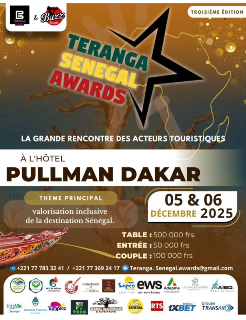 Pour sa troisième édition, les Teranga Senegal Awards s’affirment comme le rendez-vous incontournable pour tous les professionnels et passionnés du tourisme au Sénégal. Organisé par la journaliste et présentatrice Kewe Sène, l’événement met à l’honneur ceux qui participent activement au rayonnement de la destination Sénégal, véritable symbole de teranga (hospitalité sénégalaise).