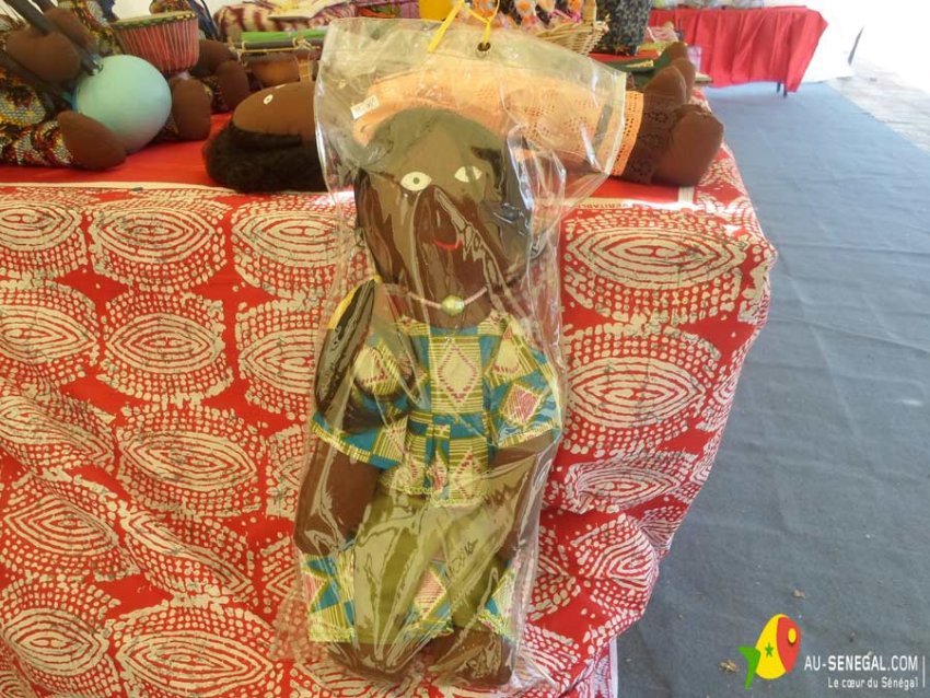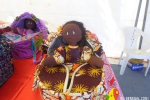 – Les poupées africaines en tissus aux cheveux crépus, ou aux cheveux longs que les petites filles peuvent coiffer. A côté des vêtements de rechange en wax, bazin, brodés ou en pagne tissé, et des couffins pour se promener.