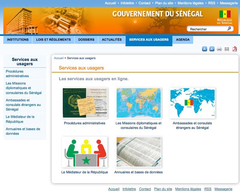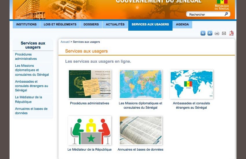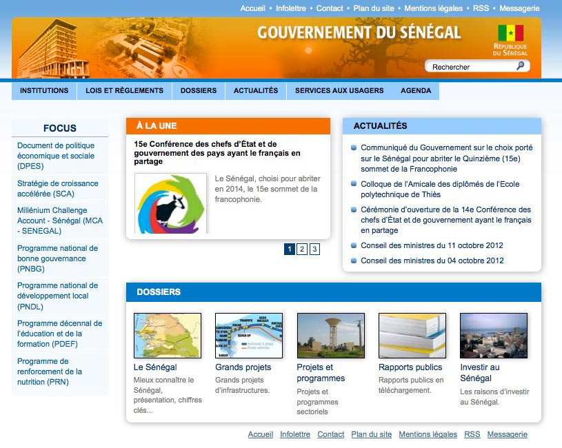 La troisième version du site internet du Gouvernement du Sénégal a été mise en ligne ce matin. Un site sobre et fonctionnel, avec des contenus enrichis et de nouvelles fonctionnalités :