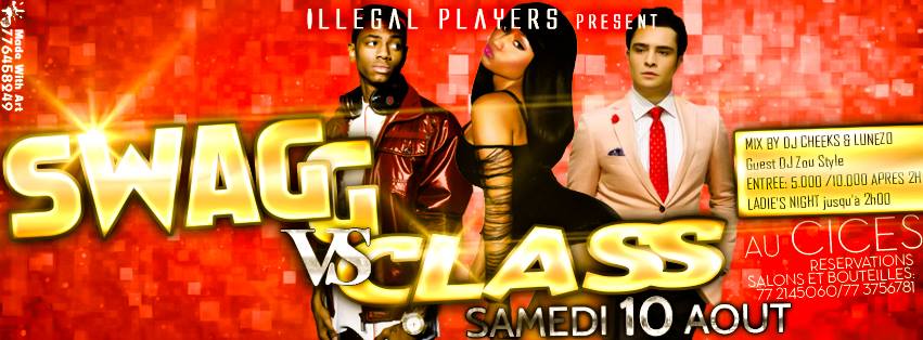 – Swaag vs Class Party. Vous êtes plutôt Swagg ou Class ? Venez le découvrir ce samedi 10 Aout au CICES ! Ambiance assurée jusqu’au bout de la nuit. http://agenda.au-senegal.com/swagg-...