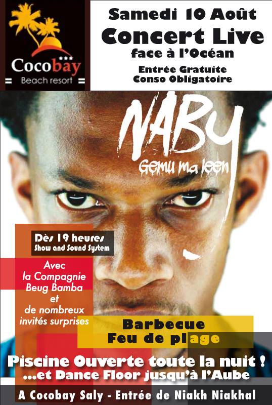 – Pour le Samedi 10, sortez de Dakar, destination Saly ! Plus particulièrement le Cocobay Hotel et rejoignez Naby qui sera en concert avec son nouveau tube « Gemu ma leen » http://agenda.au-senegal.com/naby-g...