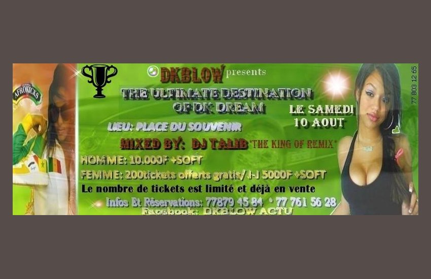 – Toujours le samedi 10 rendez-vous à la l’ultime soirée comme l’indique son nom : The Ultimate Destination of DkDream à la place du souvenir africain. http://agenda.au-senegal.com/the-ul...
