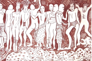 Le thème dominant de sa production picturale de ces dernières années s’inspire des légendes africaines, de la mythologie grecque et de la condition humaine. Ses recherches sont orientées par le signe de la spirale qui amène les gens, les animaux et les choses dans des destins parallèles : tous sont dans la même condition, celle du cycle des naissances. Nous retrouvons ce mythe dans différentes, civilisations le disque maya, la roue hindoue, la tempête sans fin de la comédie divine.