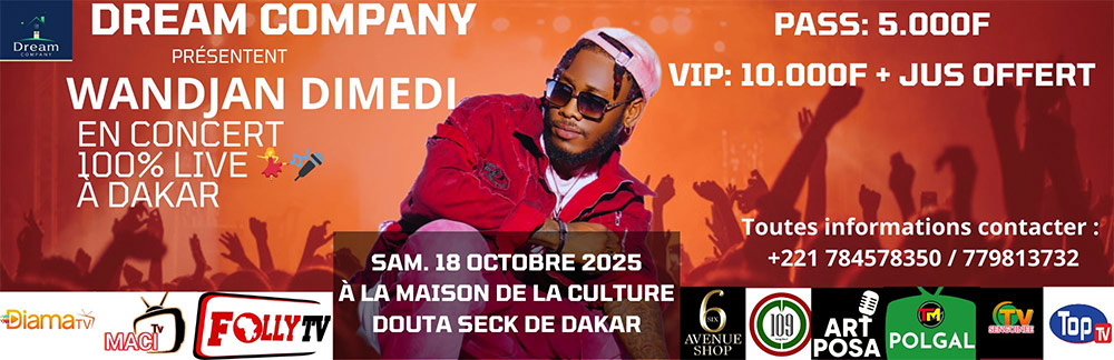 Artiste reconnu pour son énergie scénique et son univers musical captivant, Wandjan Dimedi revient à Dakar pour offrir un show inédit. Ce concert s’annonce comme l’un des grands rendez-vous musicaux de l’automne dans la capitale sénégalaise, réunissant fans et mélomanes autour d’une performance live authentique.